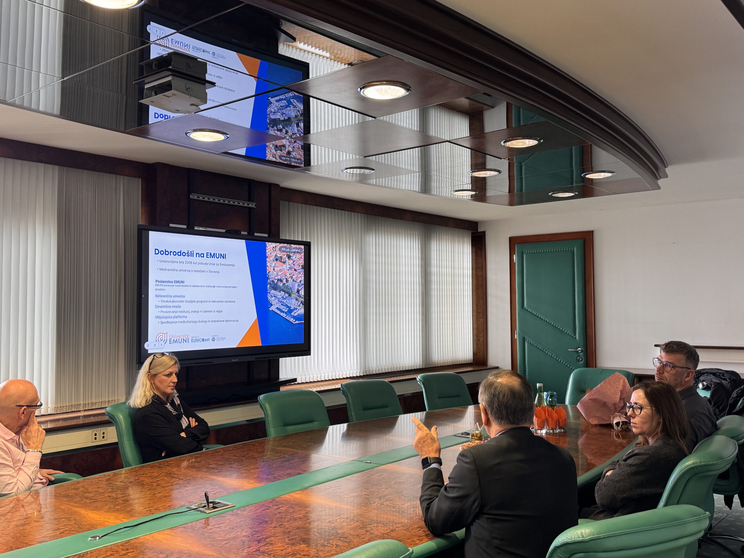 During the visit, Prof. Dr. Kutnar met with the President of EMUNI, Dr. Prof. Rado Bohinc, the Vice-President of EMUNI, Dr. Roberto Biloslavo, and the Secretary-General of EMUNI, Mag. Lina Kaldana. The meeting focused on strengthening the existing cooperation between EMUNI and the University of Primorska and on identifying opportunities for expanding collaboration through future joint initiatives.